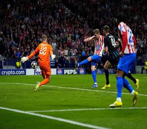 下半场第47分钟,卡多佐禁区外轰出世界波,马竞2-1布鲁日,第76分钟,索尔洛特门前抢点抽射,马竞3-1布鲁日。第87分钟,鲁杰里左路传中,索尔洛特门前凌空推射破门,上演帽子戏法,马竞4-1布鲁日,该比分也保持到了终场,马竞也以两回合7-4淘汰布鲁日,顺利闯入欧冠16强。