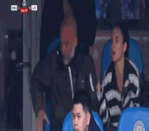 因停赛无法在场边指挥,瓜迪奥拉和其女儿在看台观战