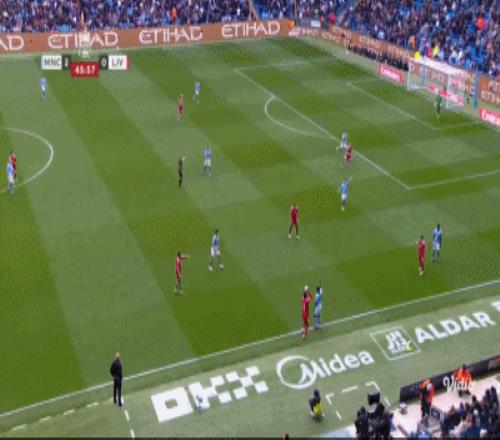第45+2分钟,塞门约传中,哈兰德头球破门,曼城2-0领先利物浦!